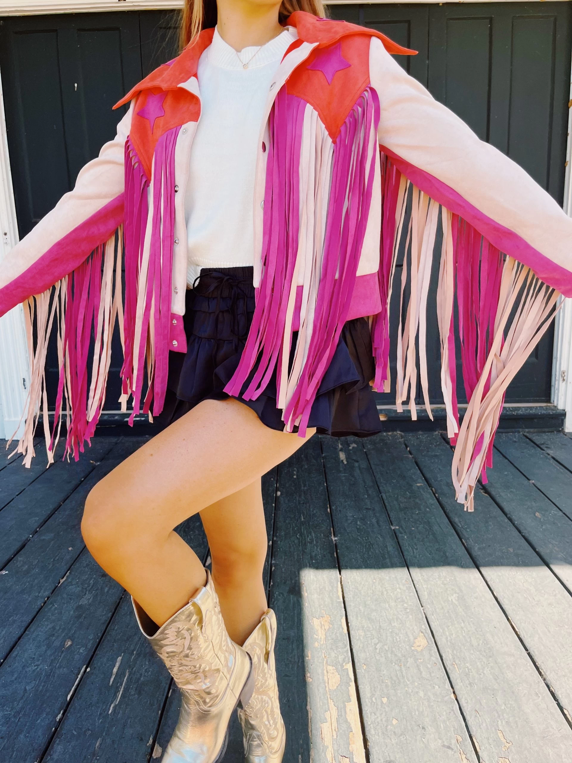 Suede long fringe star collared jacket! A STATEMENT piece that you need in your closet!ย