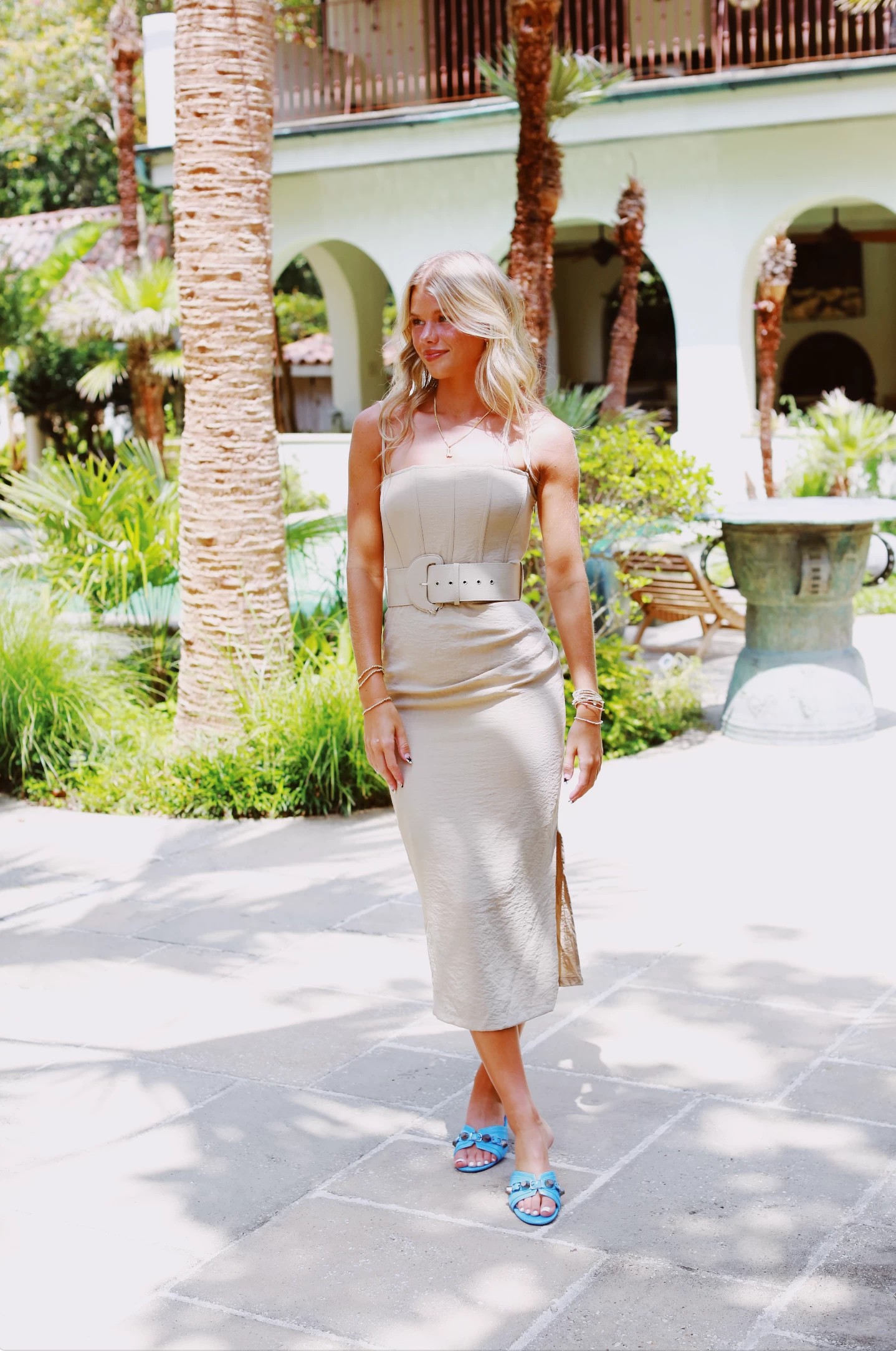 The Amuse Me Corset Dress is an elegant and eye-catching piece crafted with premium fabrics. A subtle taupe hue, the dress features a classic corset design and strapless silhouette, while the maxi length and side slit adds a touch of drama. The additional belt and sturdy, fully lined construction adds to the refinement of the dress, making it ideal for formal occasions. Completed with a side zipper, this exclusive piece will make you a show-stopper.