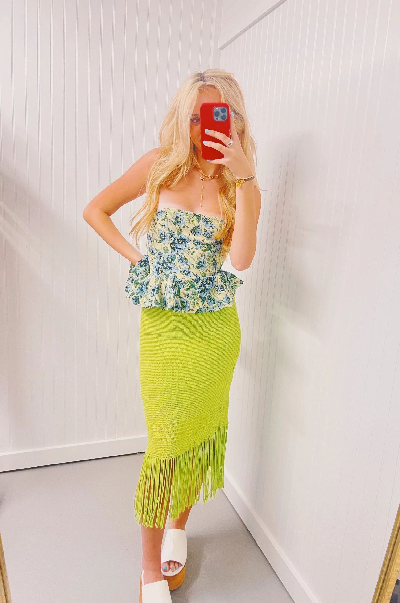 The Life In Lime Fringe Skirt is the perfect piece to add to your summer wardrobe! Pair this with a graphic tee or your favorite tank top, wedges or sneakers and you have the perfect summer look!