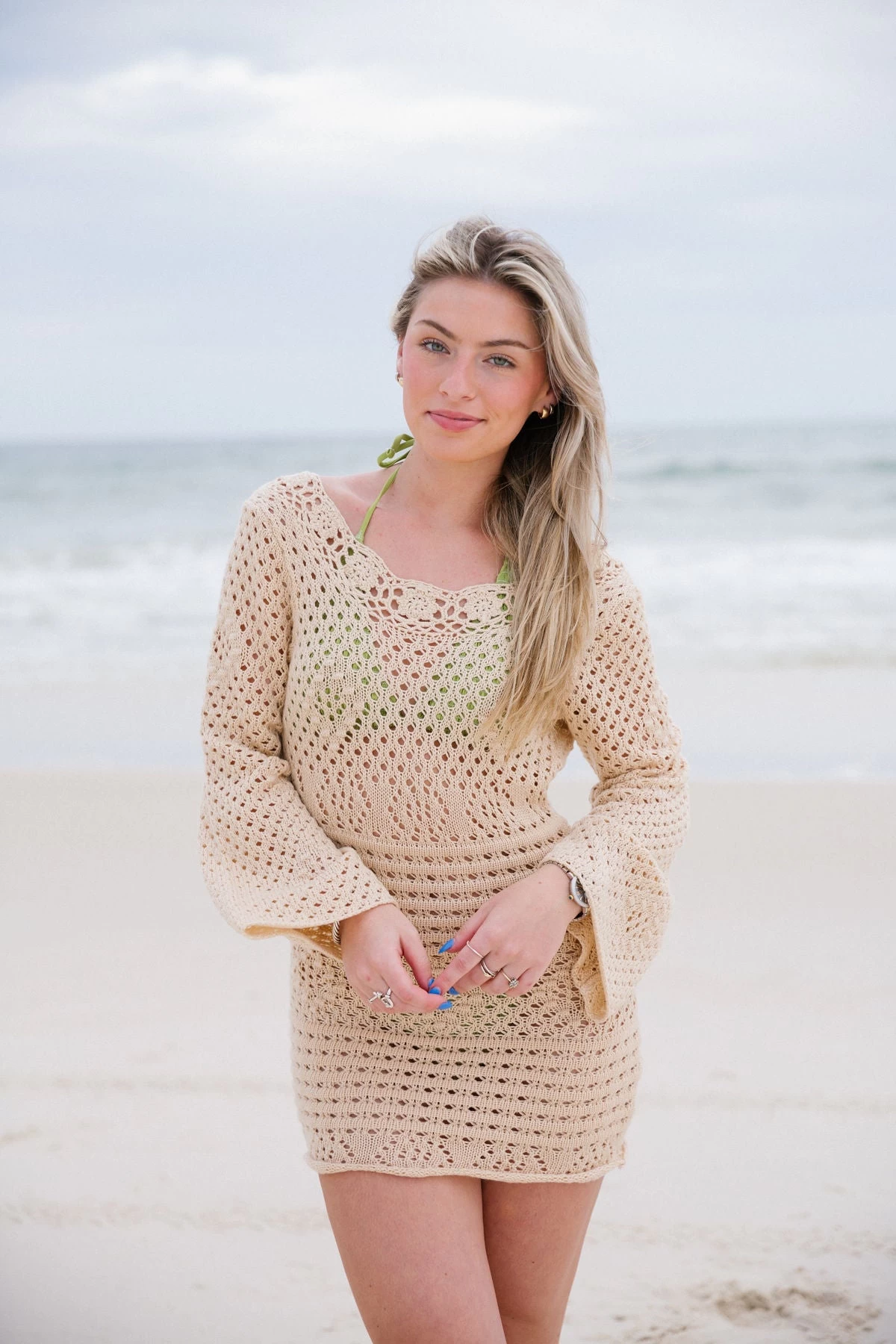Get ready for warmer days with this crochet mini dress. It’s perfect for styling over your favorite bikini!