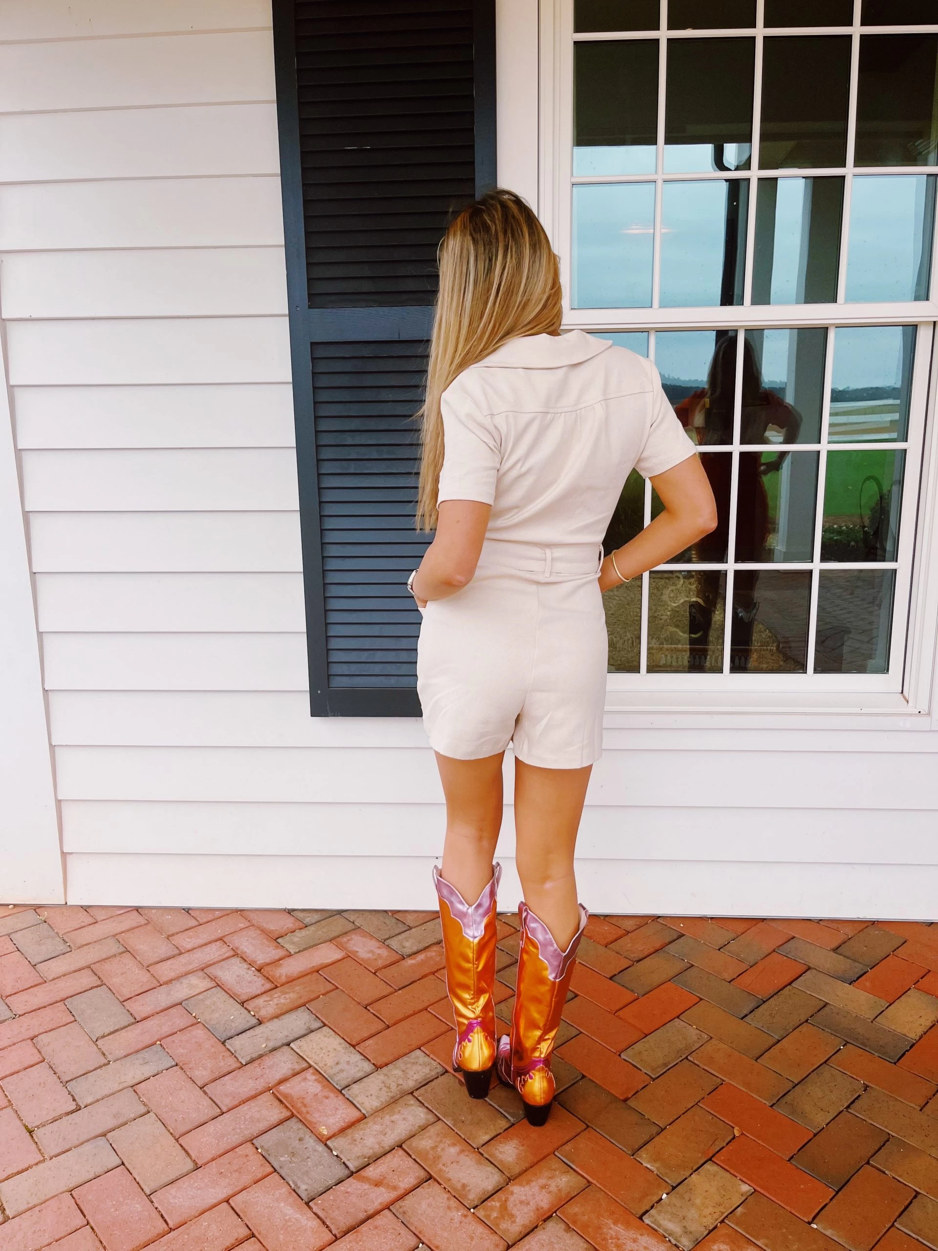 Get down with it in our Nitty Gritty Romper! It is available in Candy Red and Oatmeal! Perfect for any occasion!ย