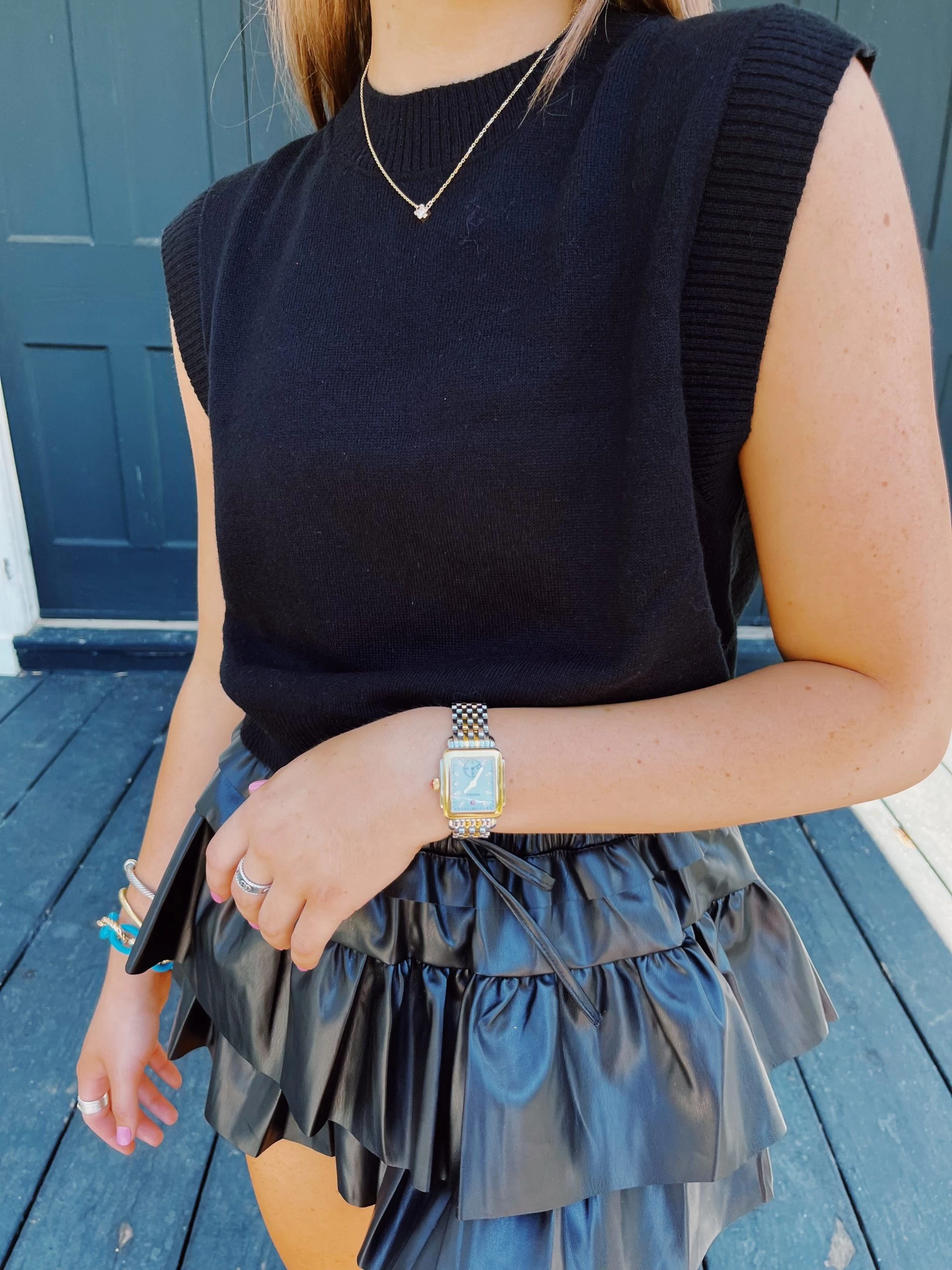Lightweight round neck sweater ribbed end knitted vest! Wear by itself or with a t-shirt under for an old school look. Model is wearing a size small!ย