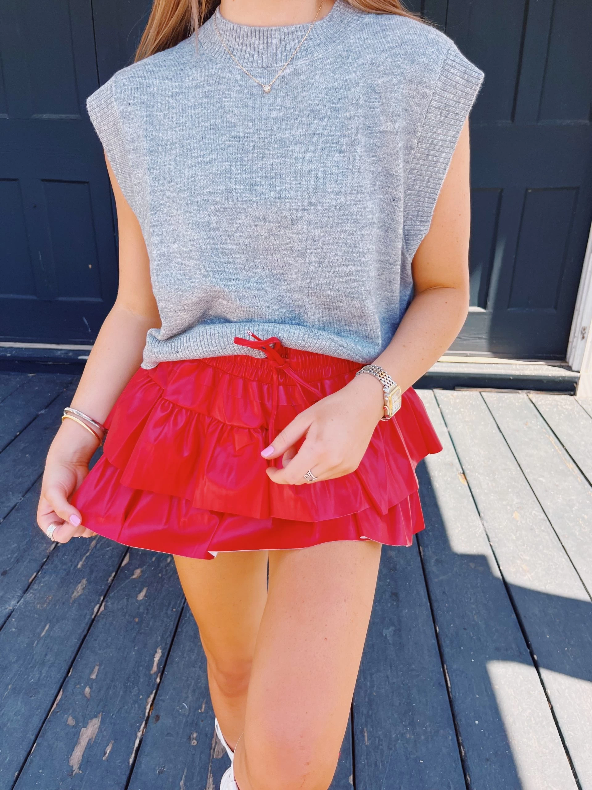 Lightweight round neck sweater ribbed end knitted vest! Wear by itself or with a t-shirt under for an old school look. Model is wearing a size small!ย