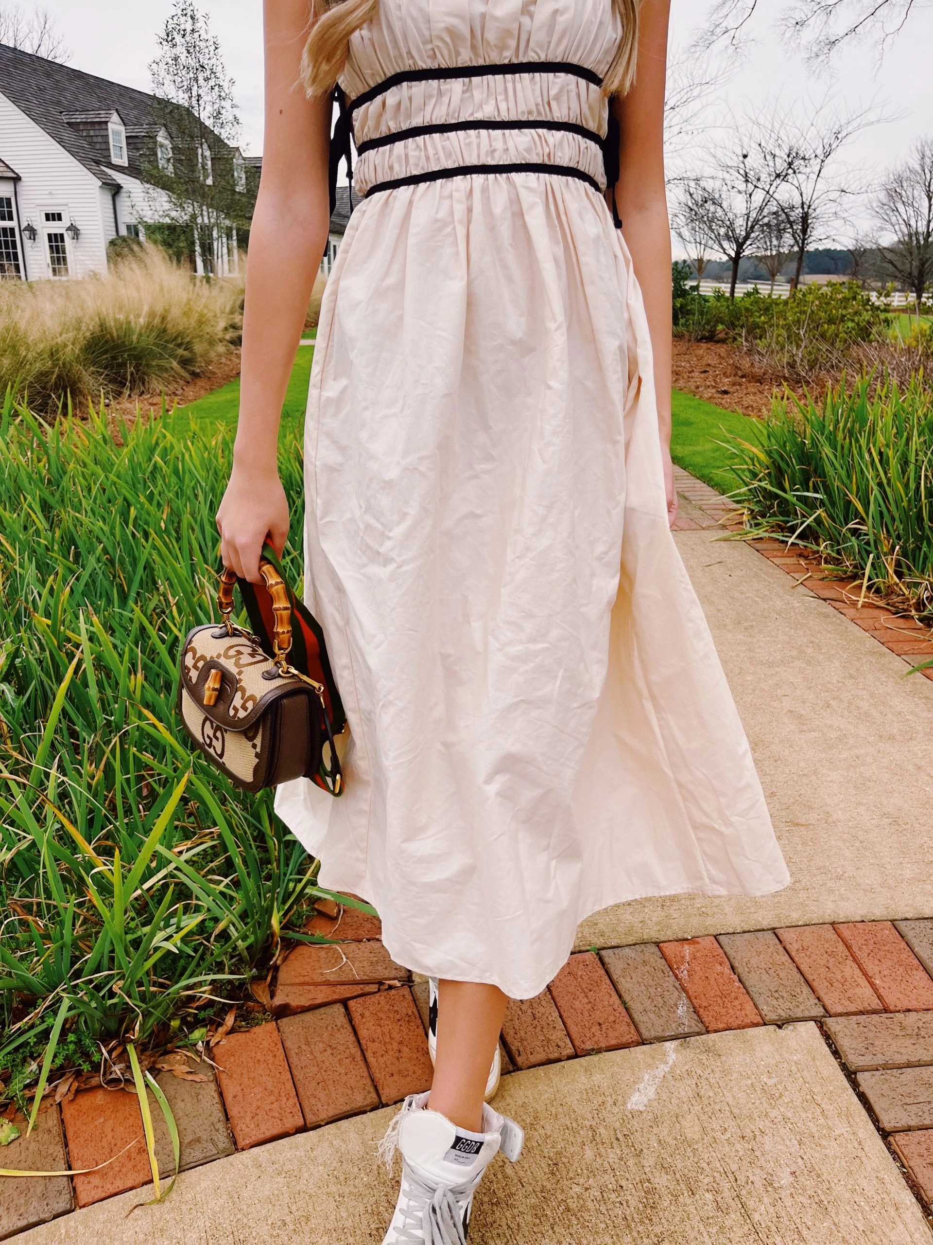 COTTON-POPLIN MIDI DRESS WITH TIE DETAILS