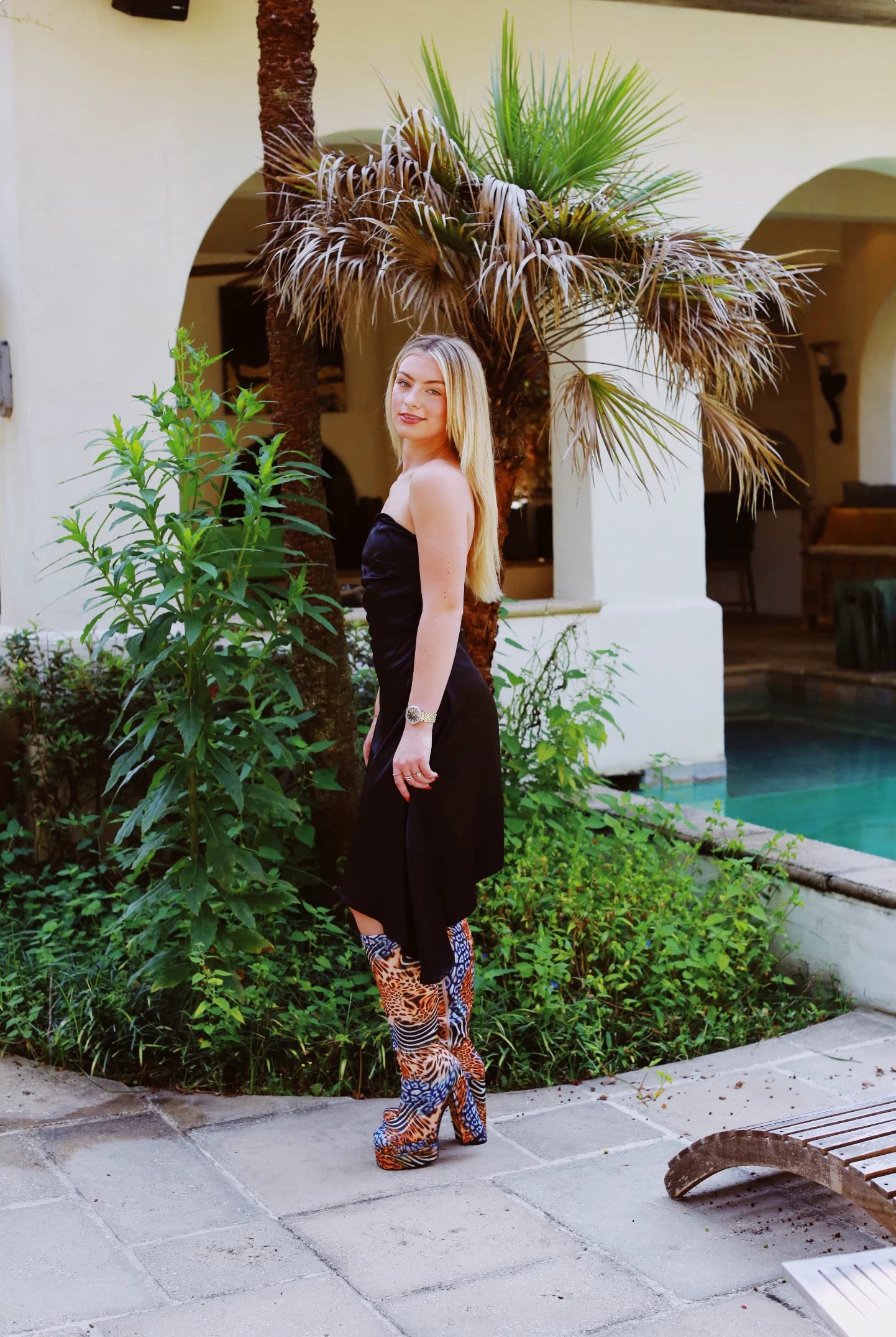 We love an asymmetrical moment, especially when it is a classy black satin dress. This mini dress is perfect for all occasions and can be dressed up or down.ย