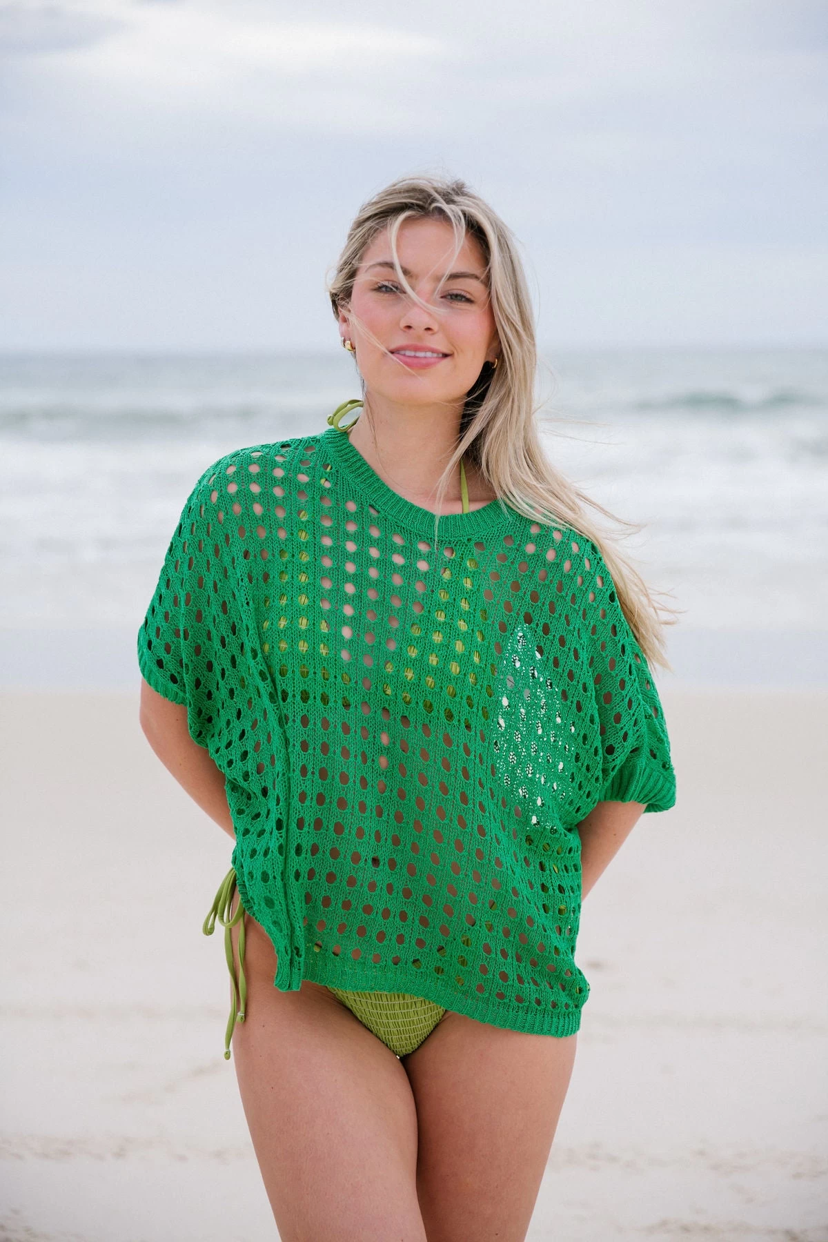 This oversized boxy fit square knit tunic top can be a top layered over a basic tank or swimsuit! It is a one size fits most sizing which makes it SUCH an easy piece to wear.