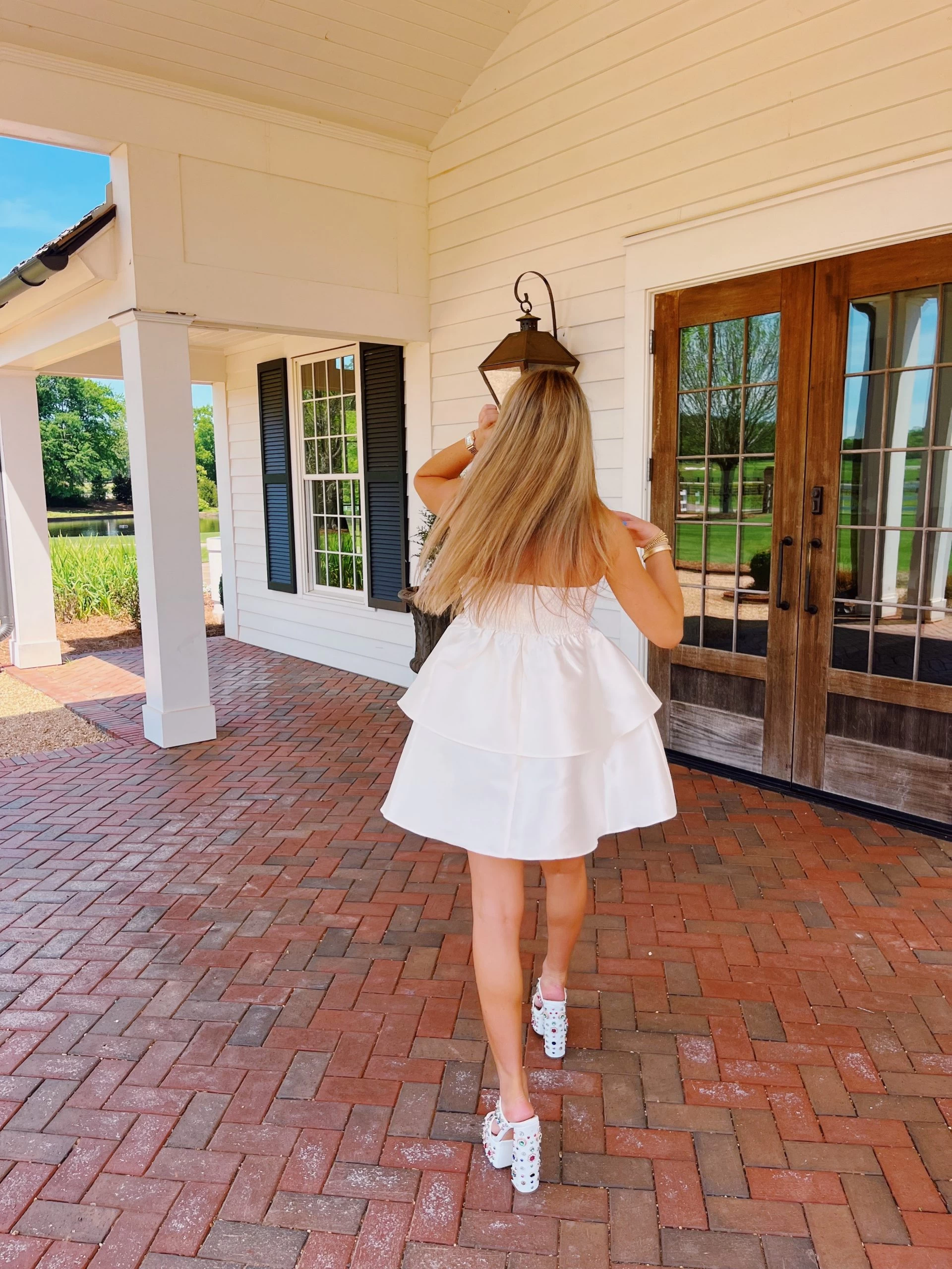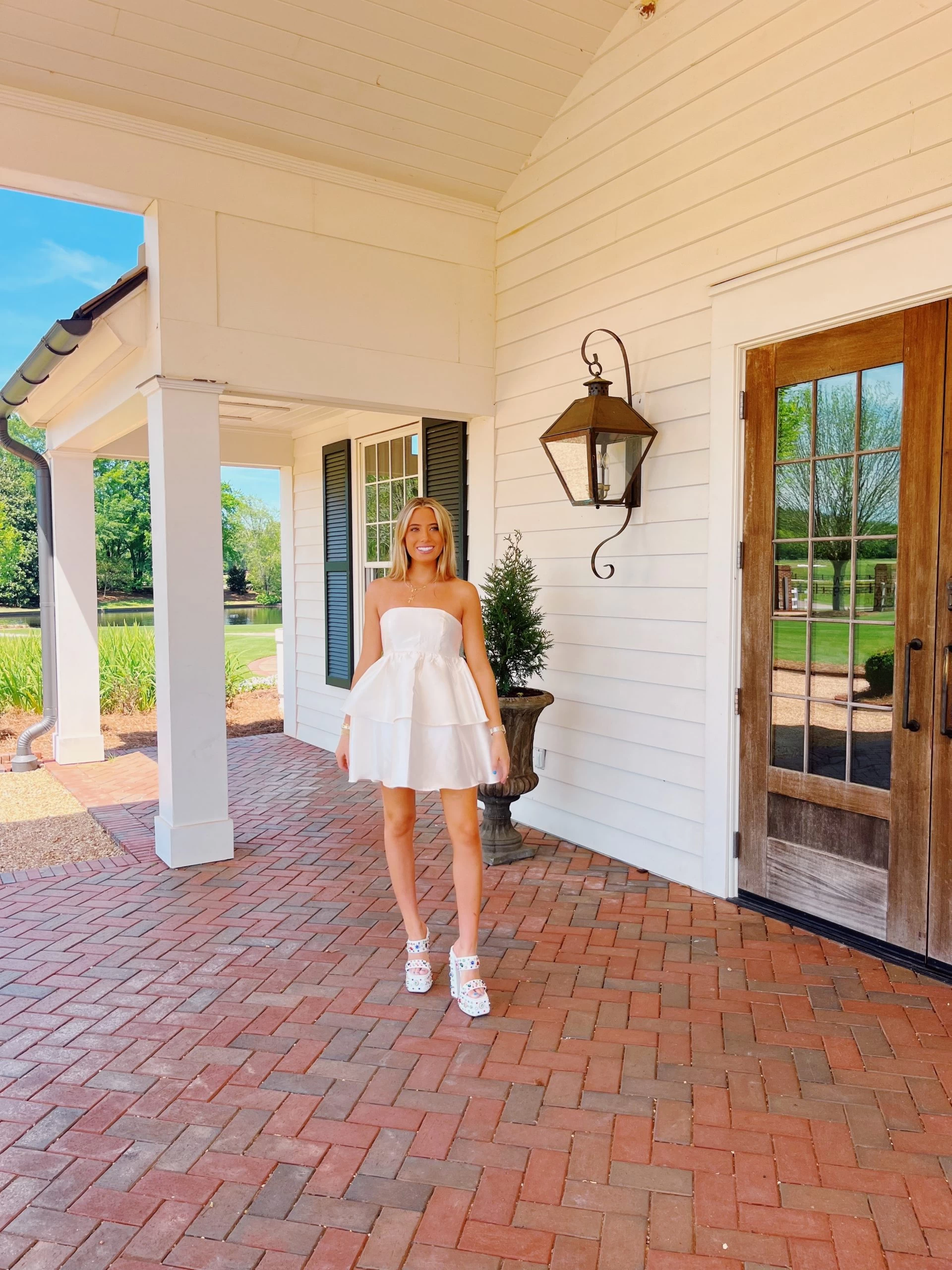 STRAPLESS TWO-TIER RUFFLE MINI DRESS with Smocked back.